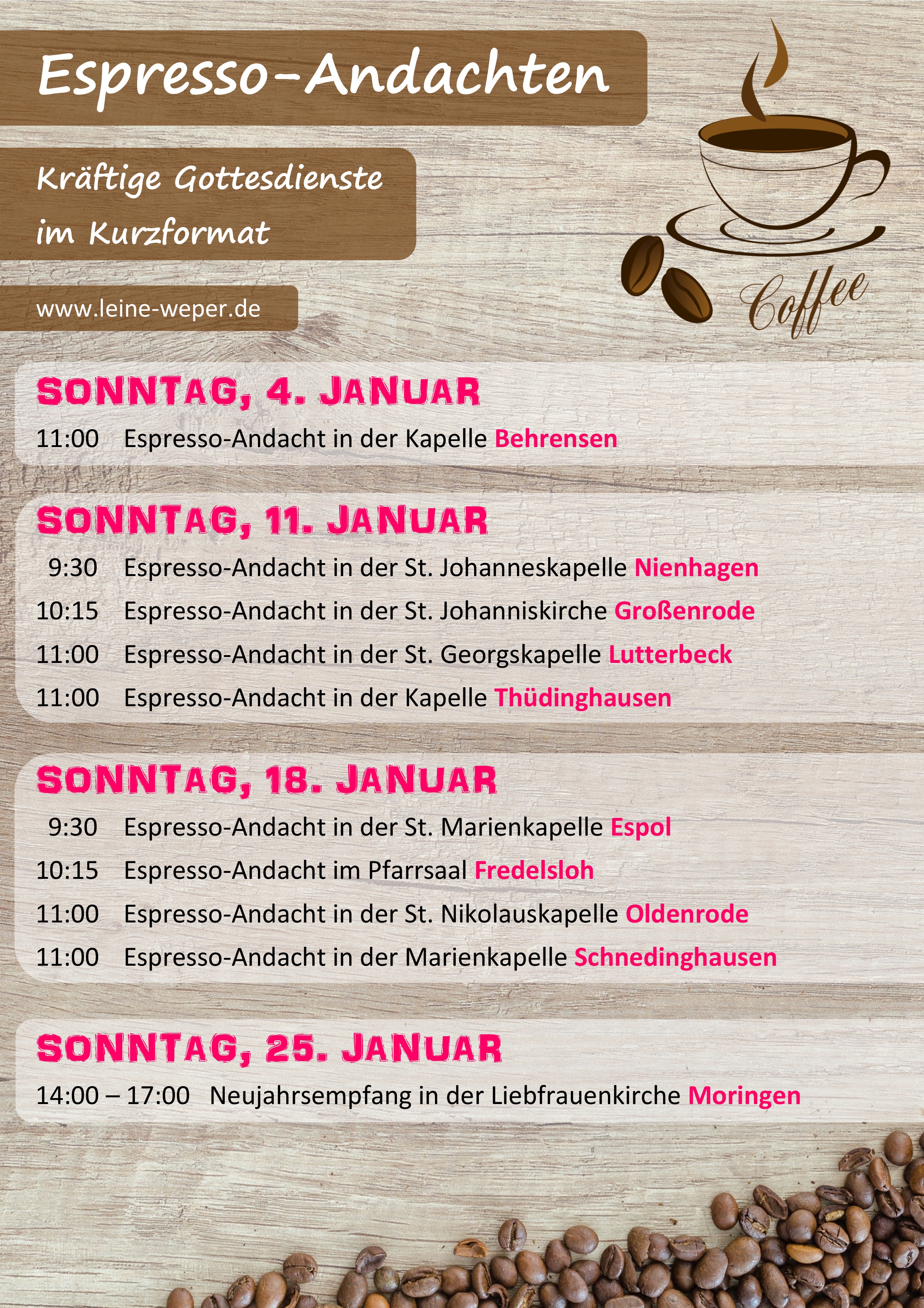 Bei den Espresso-Andachten im Januar steht die Jahreslosung 2026 im Mittelpunkt: „Siehe, ich mache alles neu“ (Offenbarung 21,5).